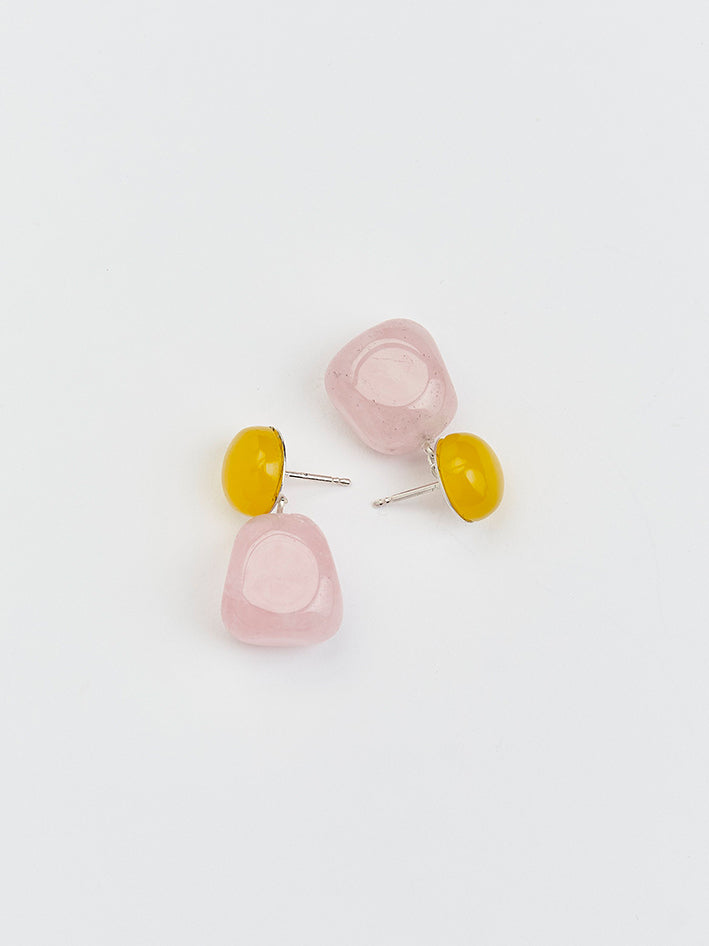sterling silver / 12mm lemon agate hemispheres / 20mm rose quartz pebbles / 3cm total length / for pierced ears