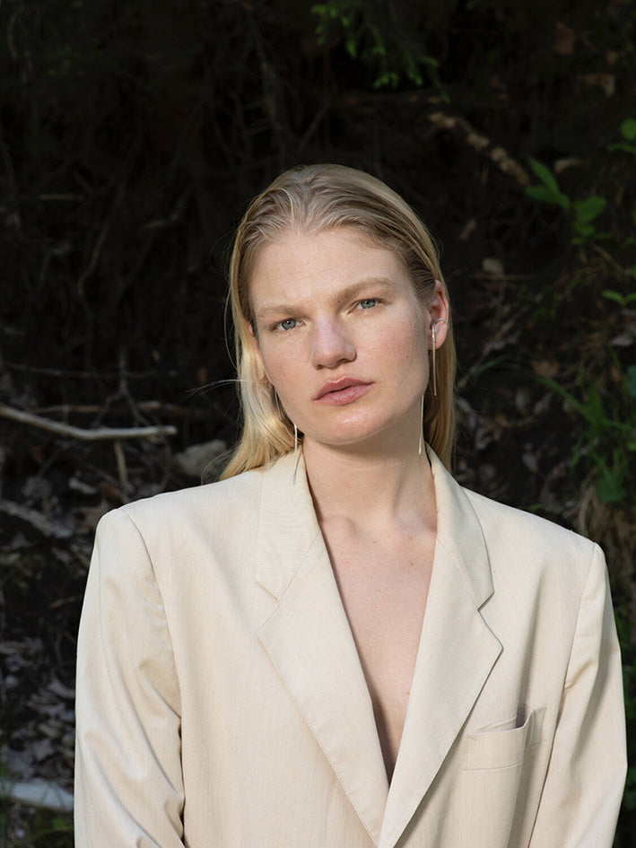 The Mussels and Muscles Spring Earcuff NO2 Right Silver, sleek, supple, silver chains trickle down from the front and the back of your ear onto your shoulders. Their movements will remind you of a small river stream caressing your skin.