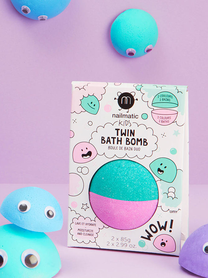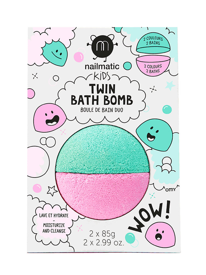 Twin Bath Bomb by Nailmatic that enables you to give 2 unforgetta-bubble baths to your little ones: one pink, one green