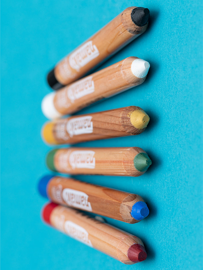 Namaki Face Painting Pencils include six high quality crayons in vibrant colours for fun kid's face painting designs. Organic, natural and hypoallergenic, these kids' face painting pencils are safe to use on sensitive skin and come in a great range of themes for all occasions.