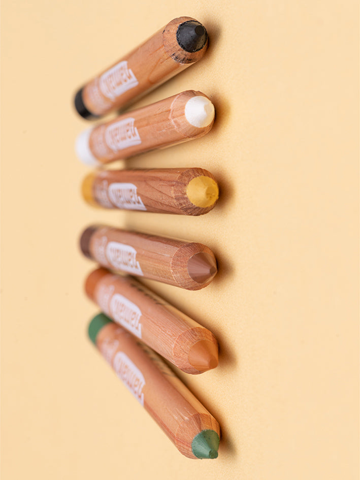Namaki Face Painting Pencils include six high quality crayons in vibrant colours for fun kid's face painting designs. Organic, natural and hypoallergenic, these kids' face painting pencils are safe to use on sensitive skin and come in a great range of themes for all occasions.