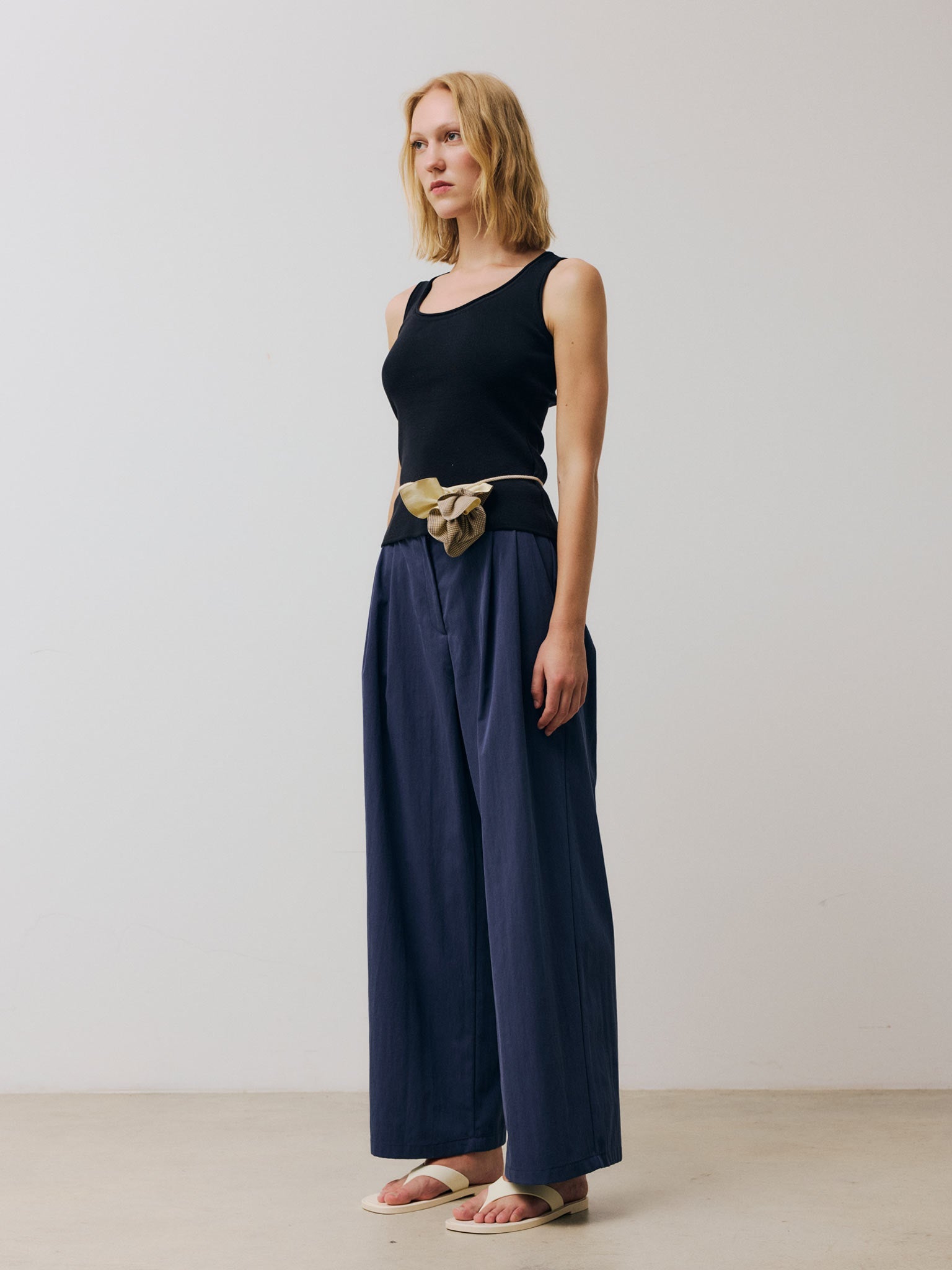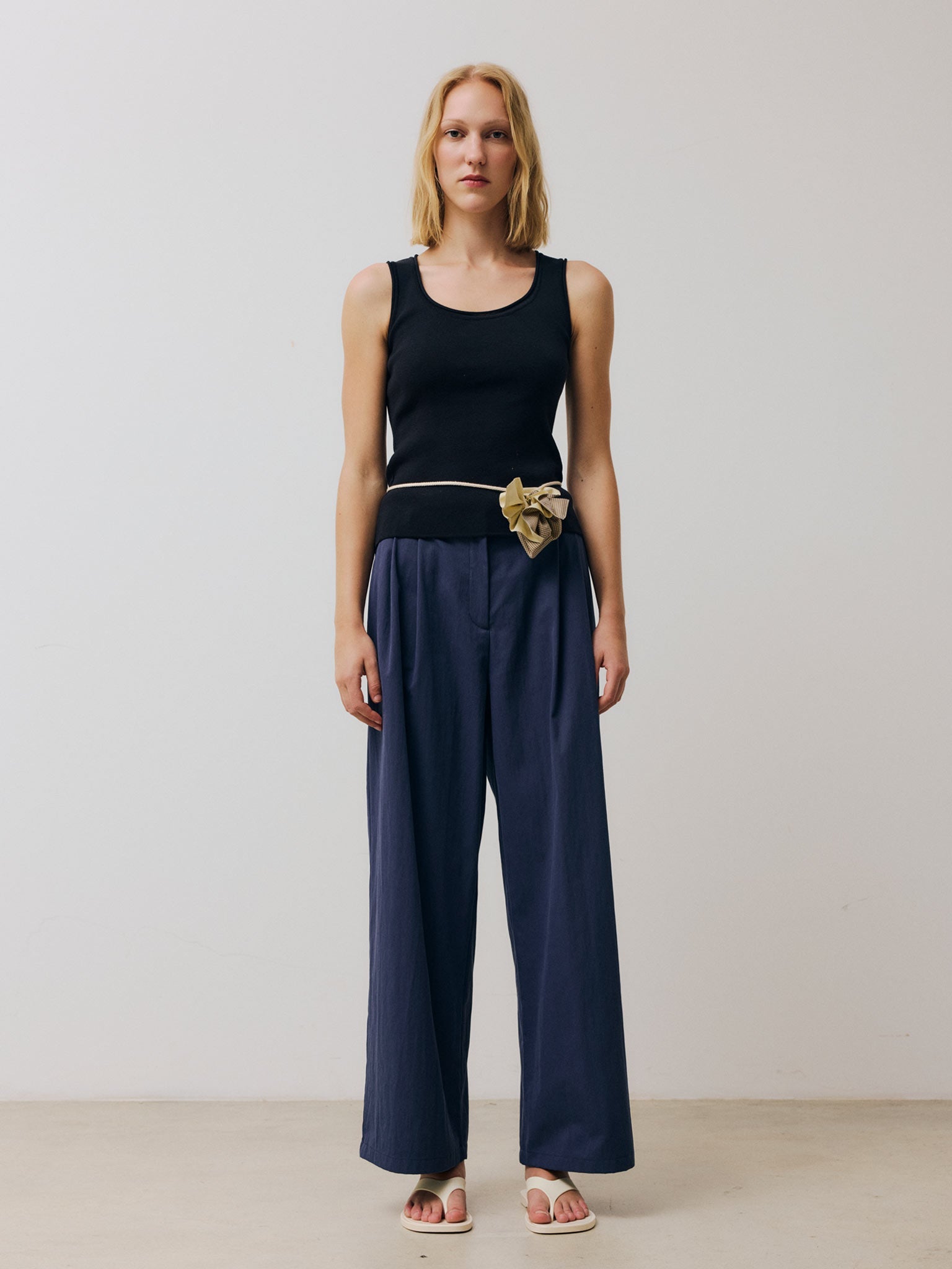 Form-fitting scoop-neck tank top crafted from fine organic cotton in a compact knit and finished with rolled trims.