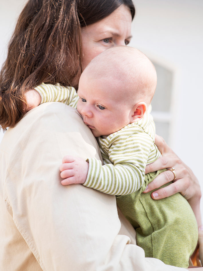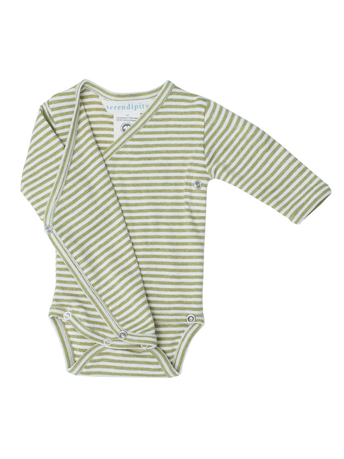 Striped Newborn Wrap Body by Serendipity in soft Grass and natural Off-white. Made of the softest organic cotton rib and GOTS certified production.