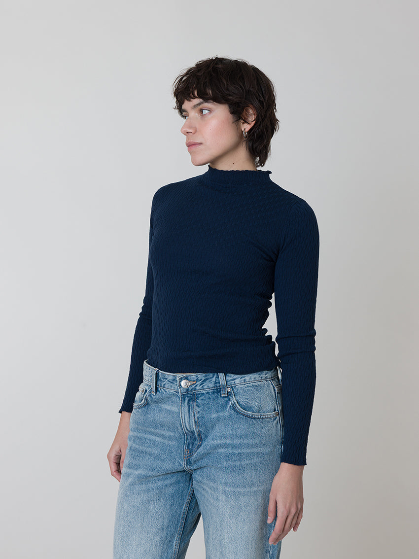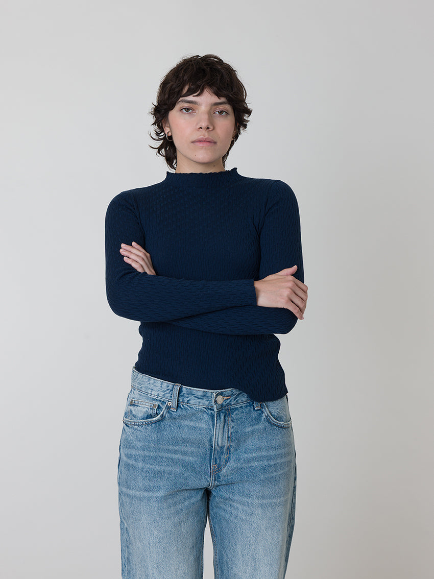 The Nisma Mockneck is knitted from fine, long-staple cotton.