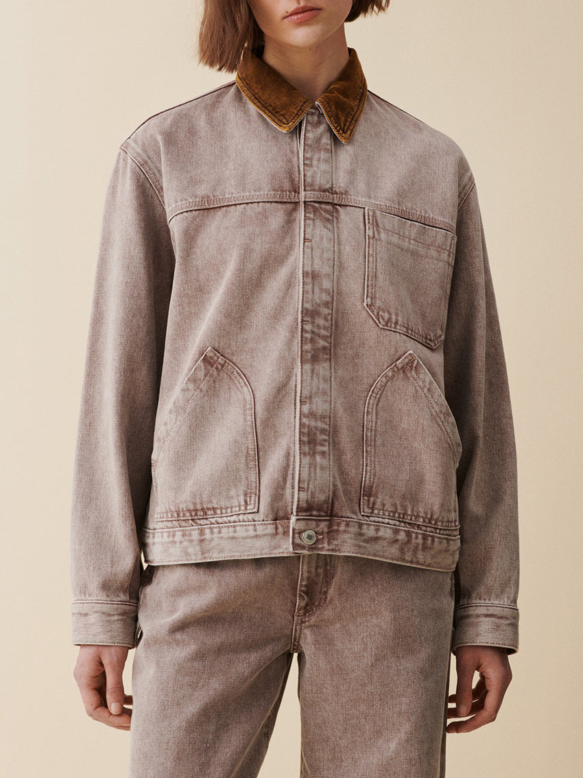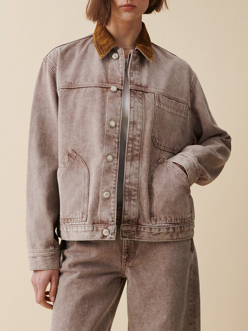The 'Nora' denim jacket offers a contemporary twist on a classic, with a hidden button closure and soft silhouette, blending traditional and modern elements.