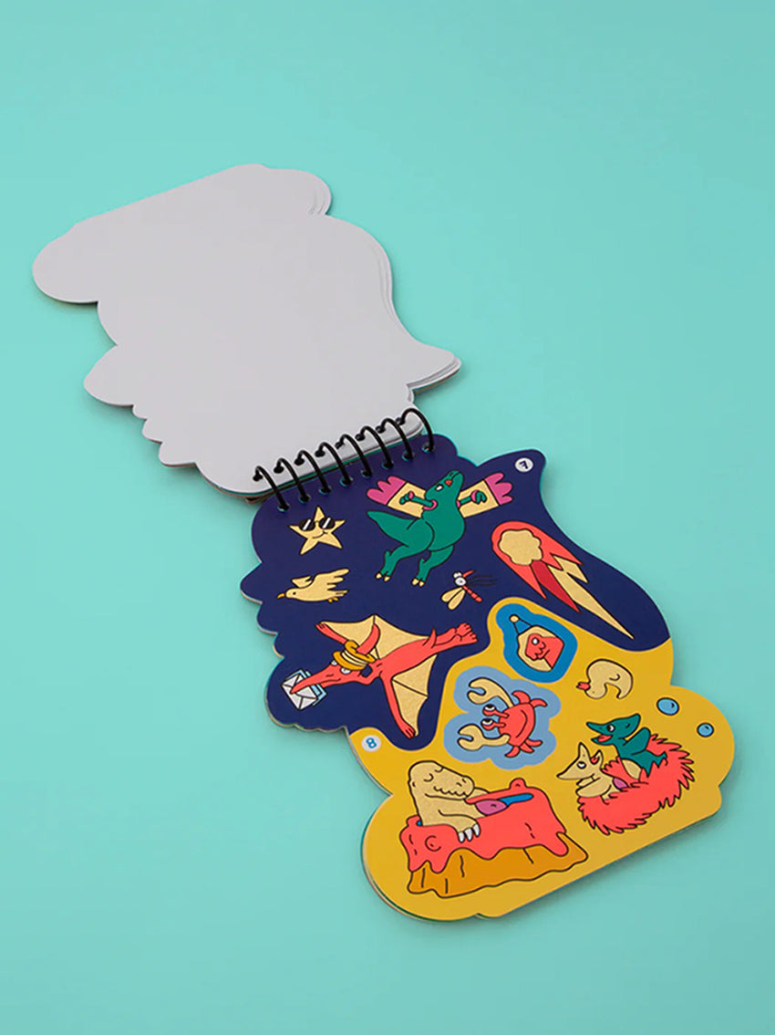 The customizable multi-activity Dino Book with fun, neon, gold, and holographic Stickers, as well as iconic OMY illustrations, is the perfect size to keep little ones busy, recreate scenes, and develop their imagination. Its presentation also makes it easy to hang. From 4 years old
