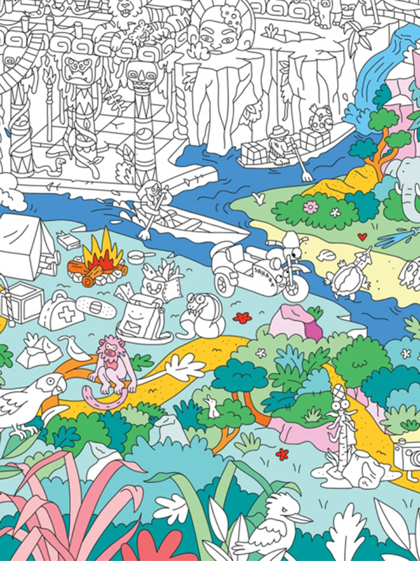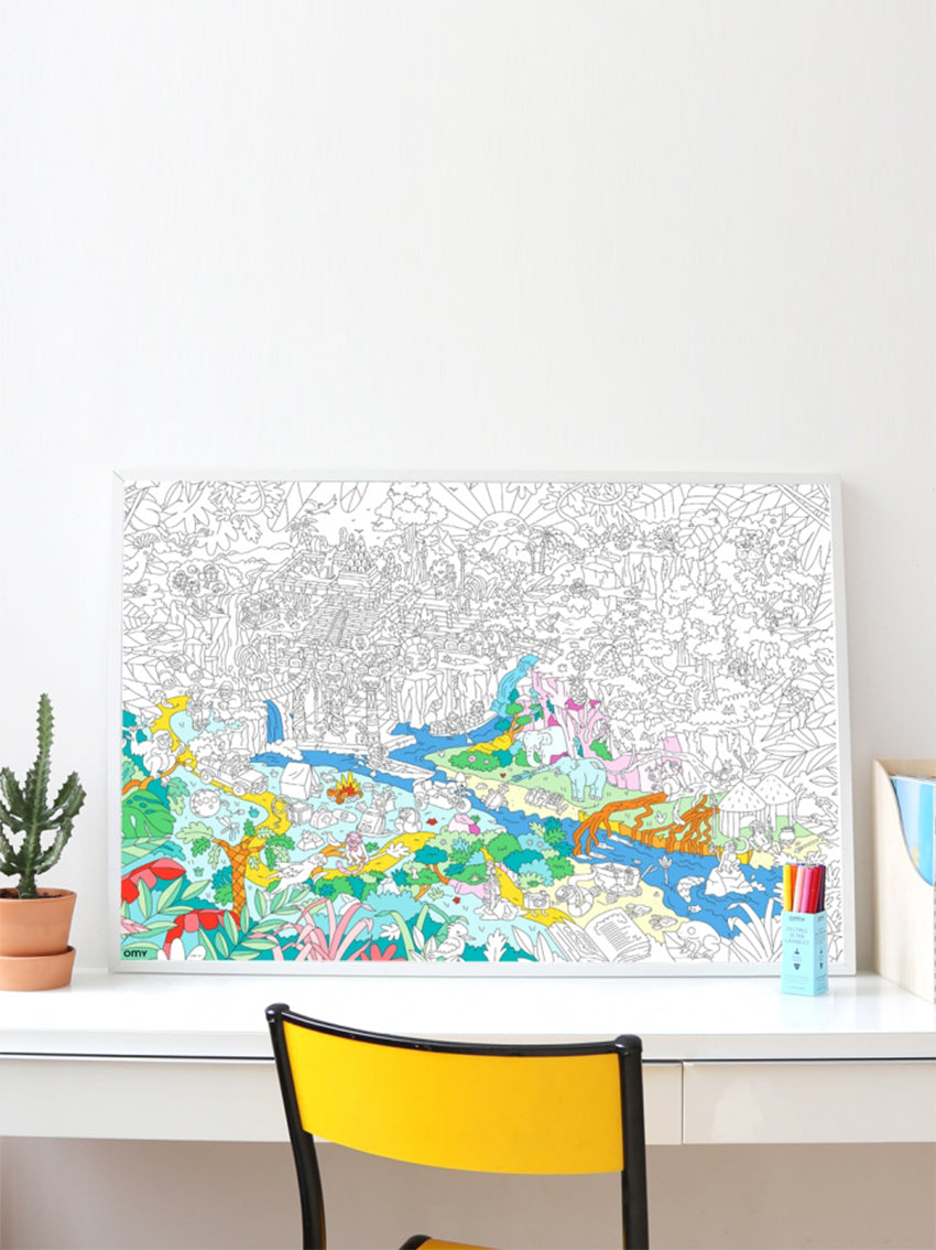 Hours of coloring fun alone or with friends, use this poster as a tablecloth wallpaper... The possibilities are endless!