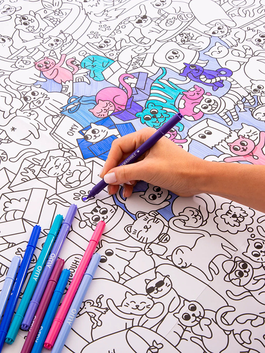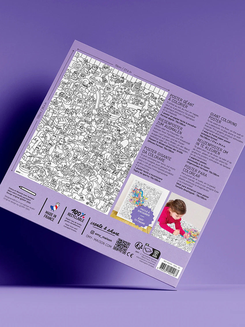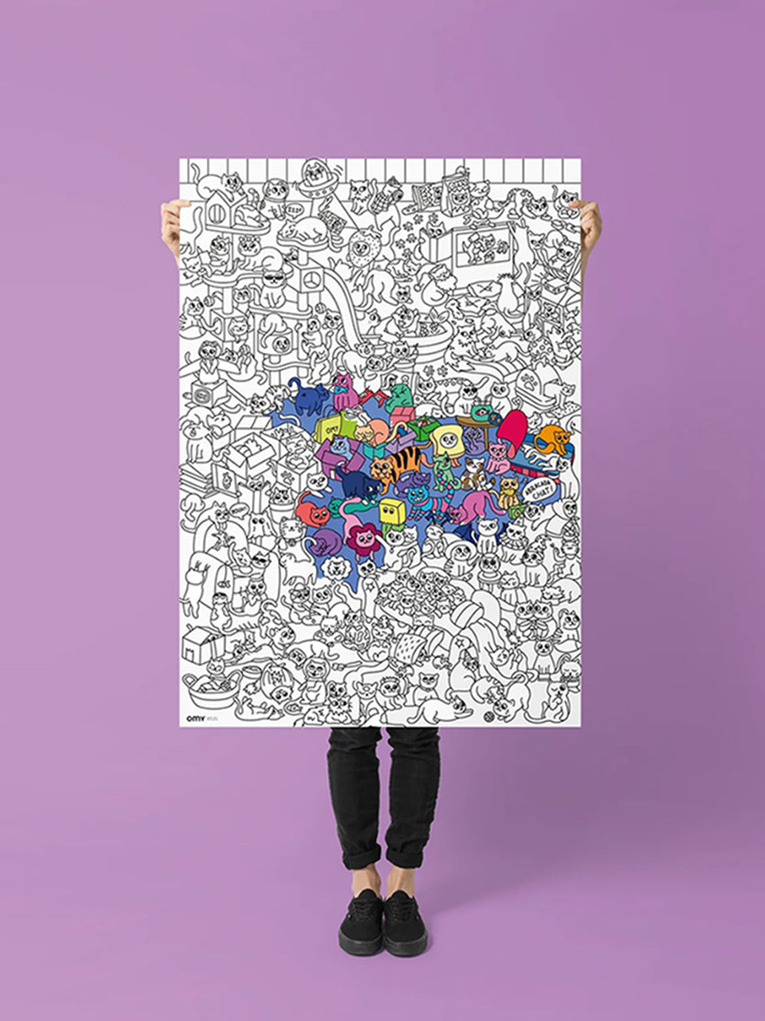 A multitude of details to color, always with Omy's quirky humor! The Kitty Coloring Poster is a limitless artistic space to play and color alone or with others, to unfold on the floor or on a table to hang on the wall. Easy to frame format. FROM 3 YEARS OLD