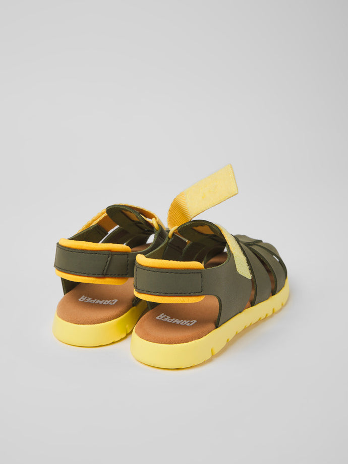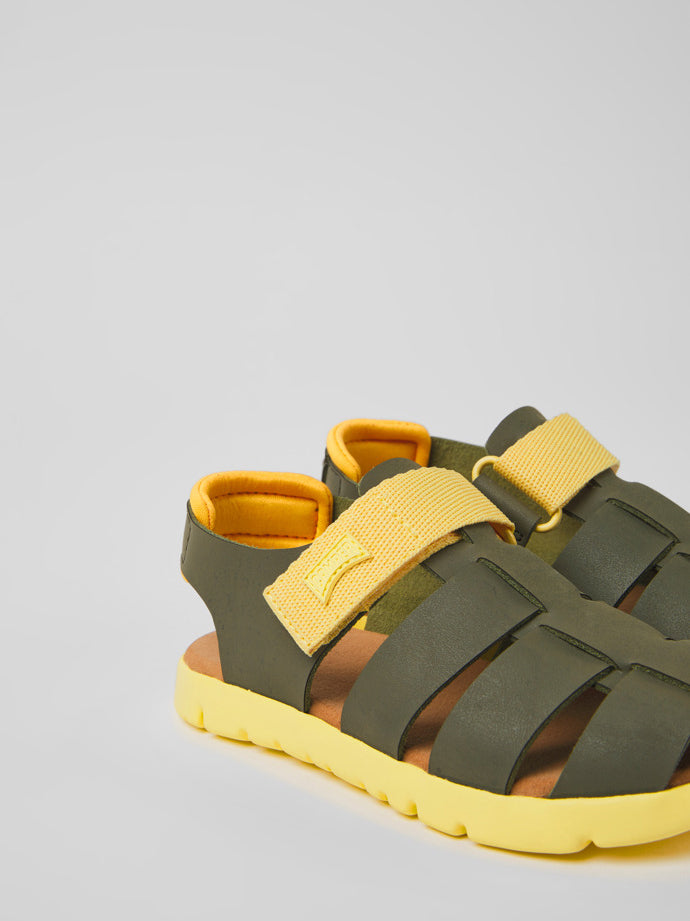 Yellow-Green children's Sandal by Camper Kids made of leather with Velcro and EVA outsole. Lightweight and flexible, the Oruga combines Camper's signature urban style with soft leather and textiles.