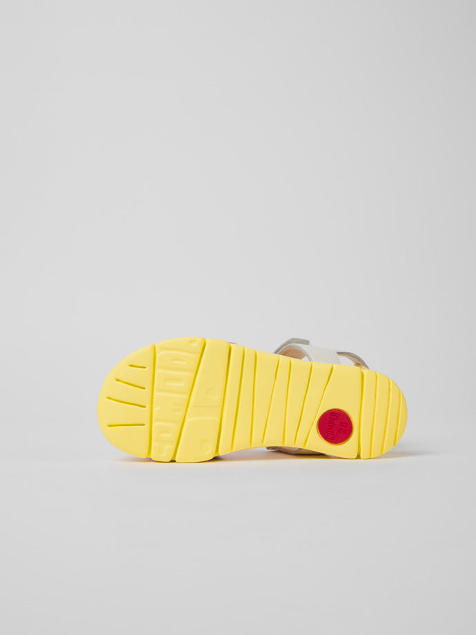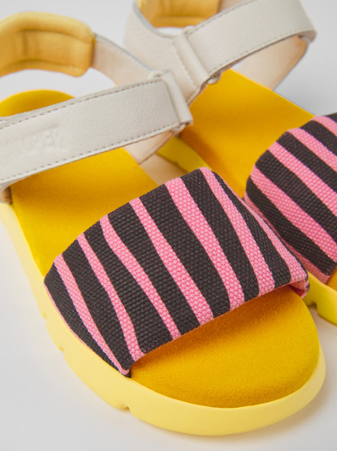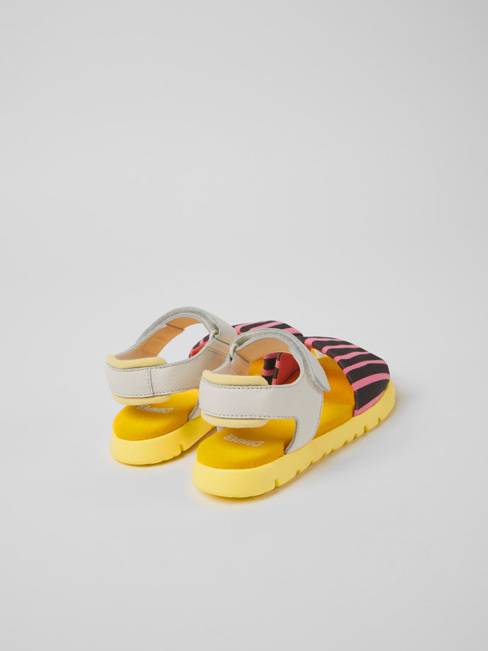 Multicolored children's Sandal by Camper Kids made of leather and textile with Velcro and EVA outsole. Lightweight and flexible, the Oruga combines Camper's signature urban style with soft leather and textiles.