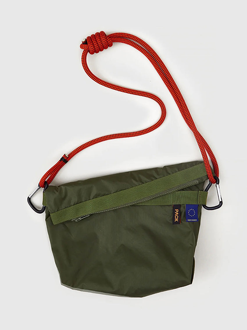 Packbags Fold Sling - Medium - Chunky Rope Strap - Osmium Green with Fluorine Red Rope lightweight, weatherproof cross-body bag that keeps your essentials safe and dry. Fits your daily basics: a wallet, sunglasses, phone, keys, a scarf and a water bottle.