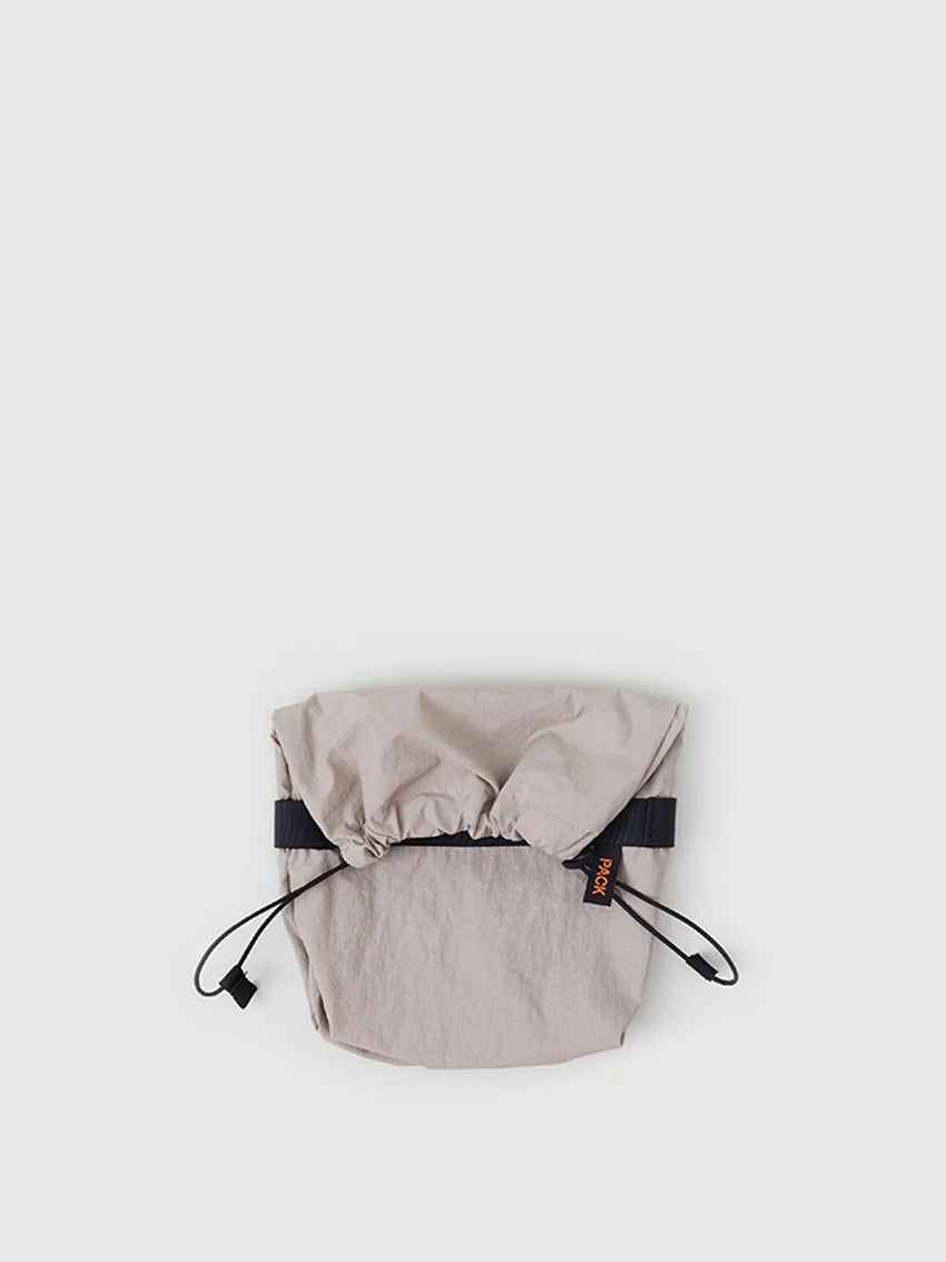 Packbags Drawstring Pouch Small Clay Grey, lightweight, weatherproof drawstring pouch module for your daily essentials. Fits a wallet, sunglasses, phone, keys. Add strap and carabiner modules or a flat strap to create a lightweight crossbody bag, use it as the liner for the drawstring square basket small, use it as an extra color option for your current bag or replace your previous pouch to keep your bag for a longer time.