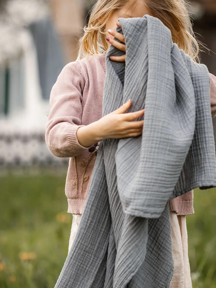 The Petit Stellou NOOSHI Blankets, an absolute MUST-HAVE and favourite piece for the whole family! Can be used as a blanket, maxi-scarf, shower and beach towel (easy to carry in your luggage and dries quickly), nursing blanket, comforter blanket ... In soft "pre-wash-crinkle" quality.