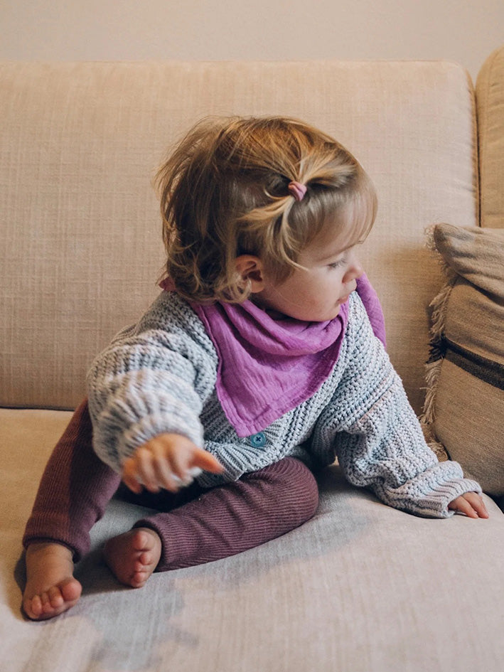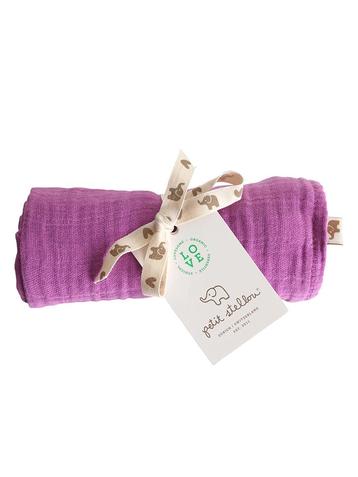 The Petit Stellou Nooshi in Night is to cuddle and snuggle ... for at home and on the go ... instantly protecting baby's sensitive head from sunshine or wind ... stylish dry bib ... In baby soft, "soft pre-wash-crinkle" quality. Size: approx. 65 x 65cm Material: 100% GOTS certified organic muslin cotton Made in Portugal - Good from the start!