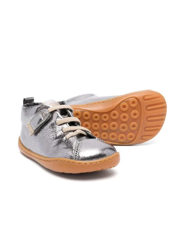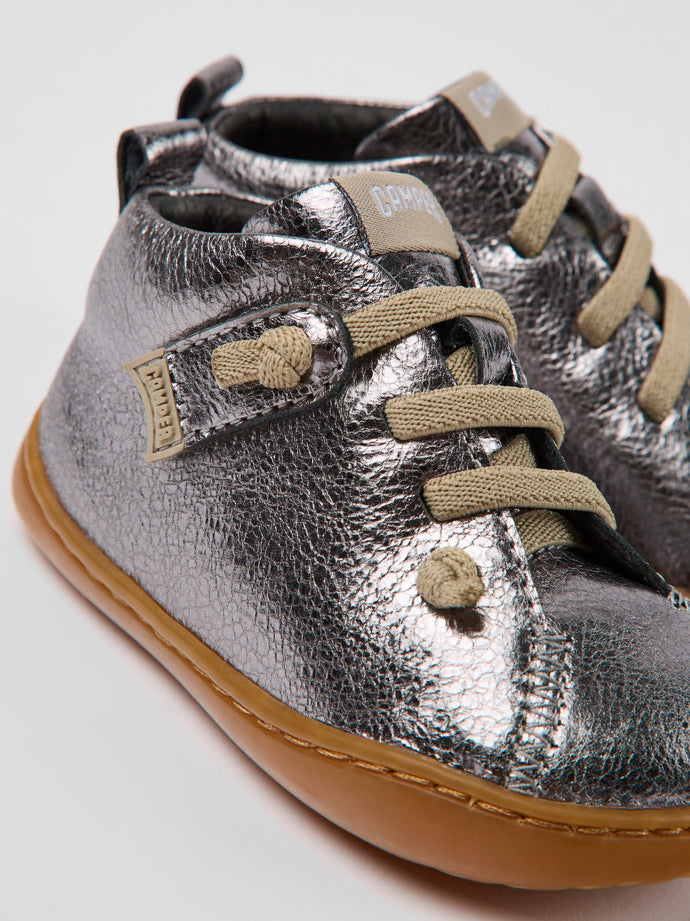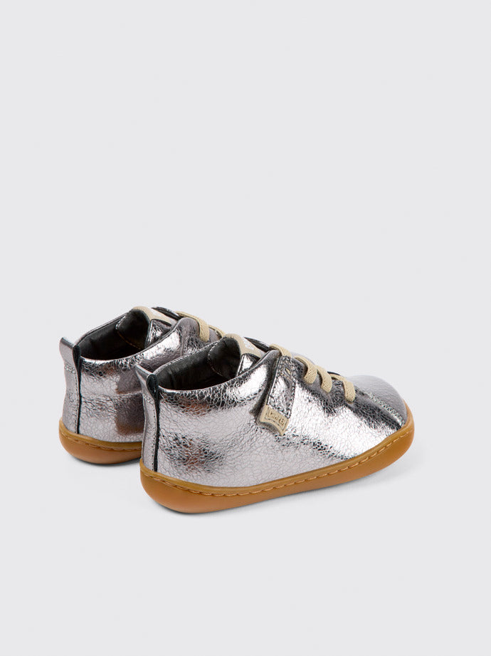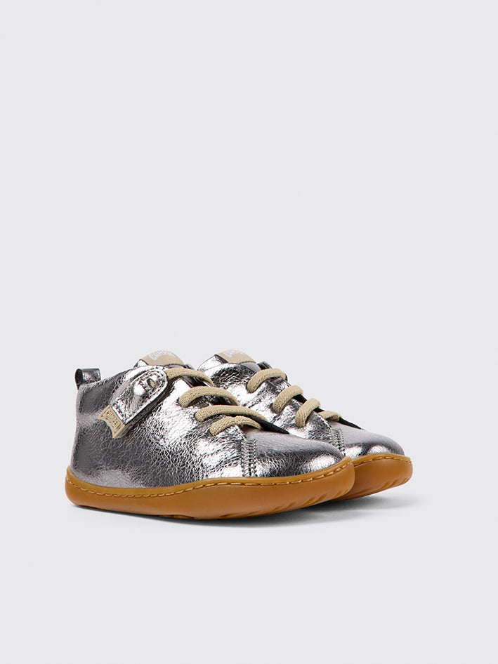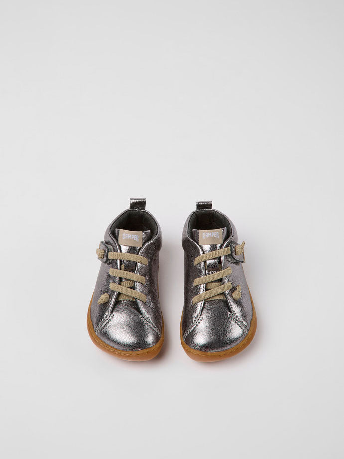 Alu leather kids' shoes with Elastic laces and rubber outsoles (20% recycled). A Camper Icon that evolves with every season. Peu is functional simplicity inspired by walking barefoot. It is 360-degree stitched and built with a Strobel construction technique, guaranteeing unmatched flex and durability under any conditions.