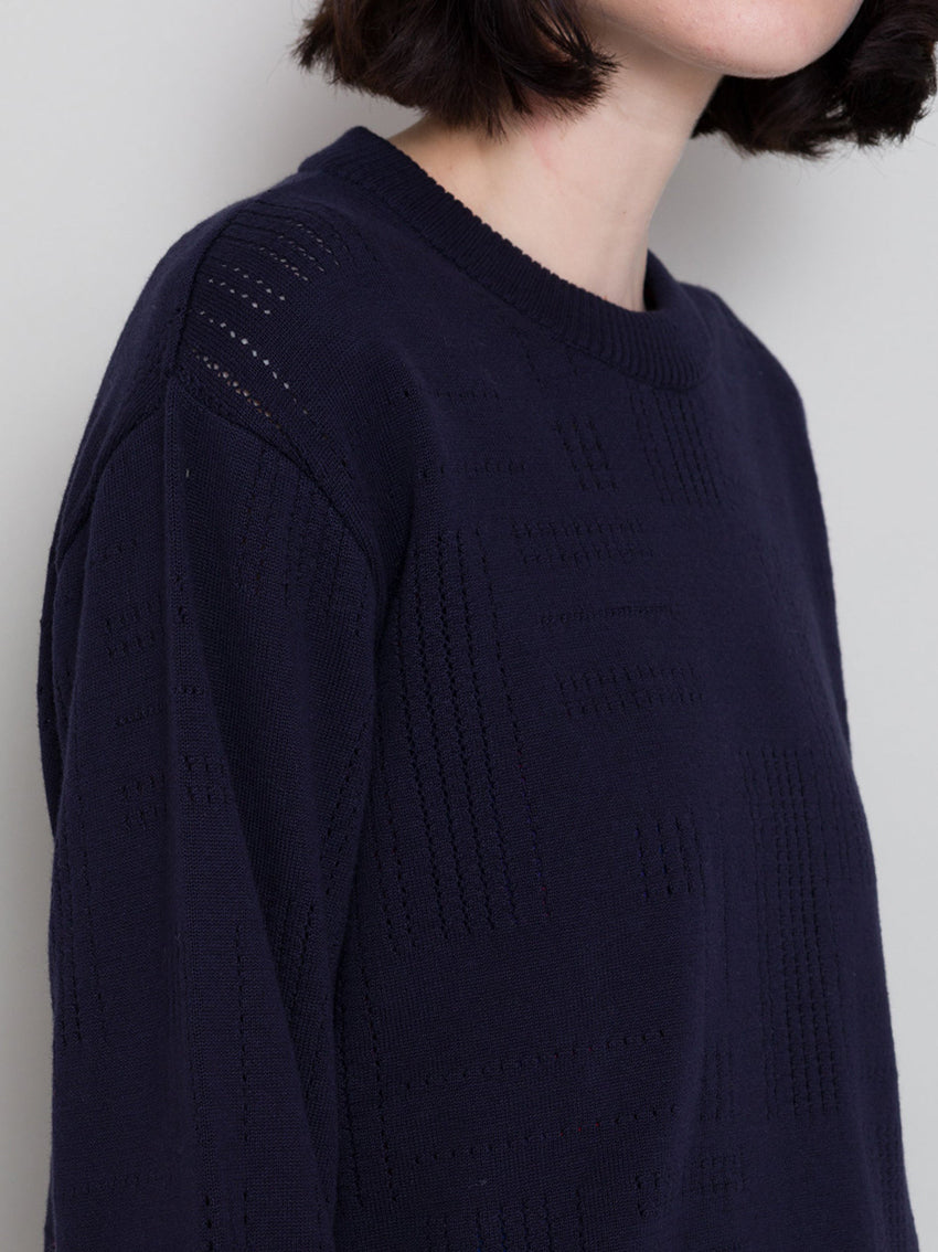 Pointelle Crew Dark Navy