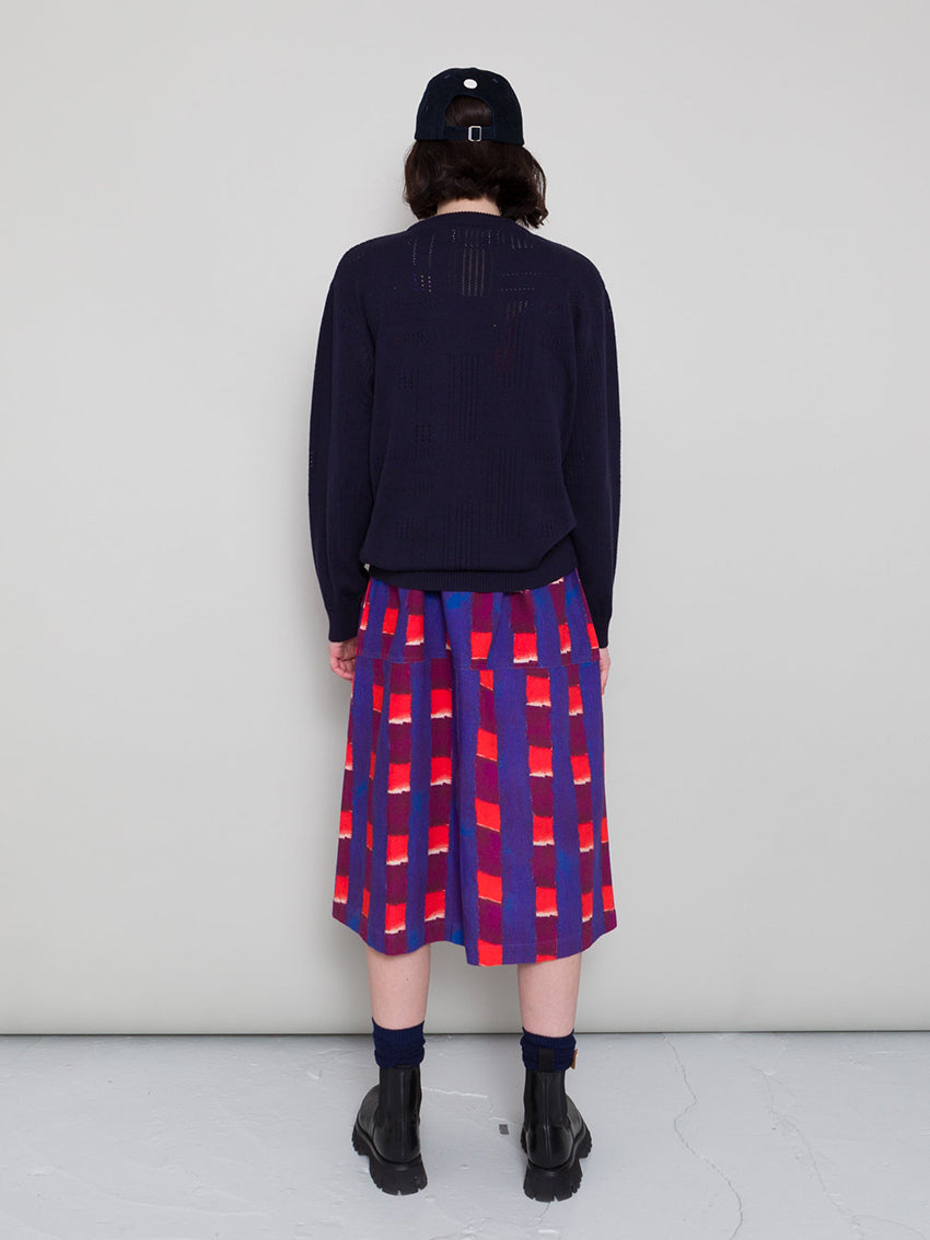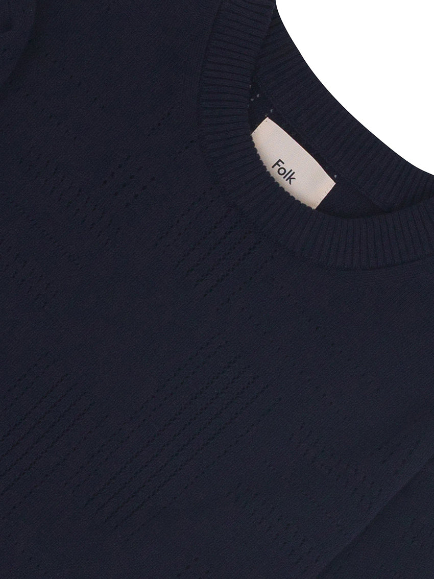Crew neck Pointelle Jumper in Dark Navy from Folk with wide and cropped fit.