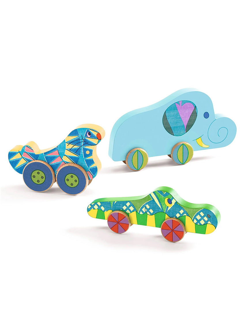 Djeco – Puzz & Roll Bariolo Wooden Puzzle & Vehicles