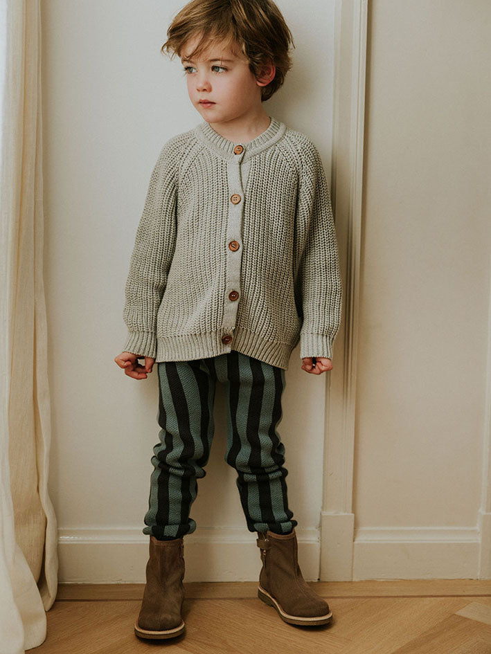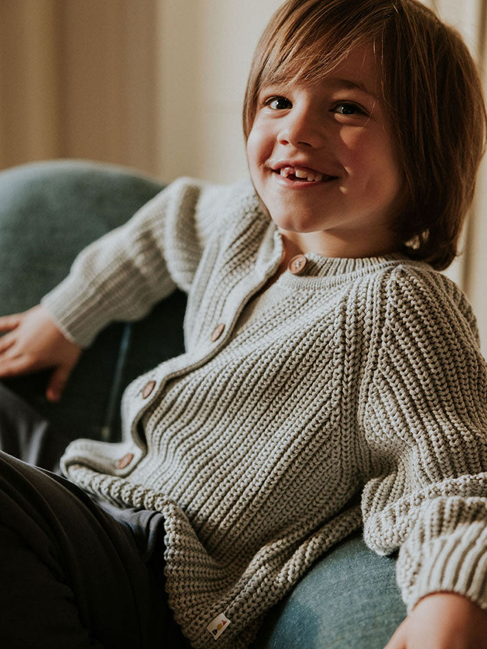 This timeless Raglan Cardigan Grey Melange from Yuki Kidswear is crafted from 100% organic cotton using GOTS and OEKO-TEX® certified yarns, offering both comfort and sustainability.