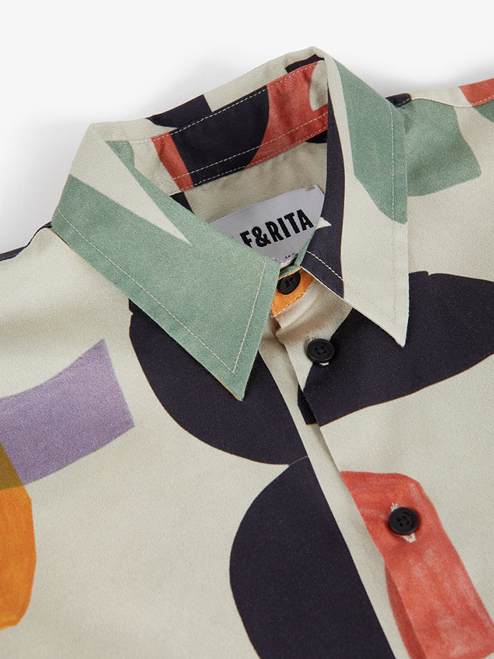 Wolf & Rita Raul Geometrie Shirt with a regular collar, buttoned cuffs, and a relaxed, loose fit.