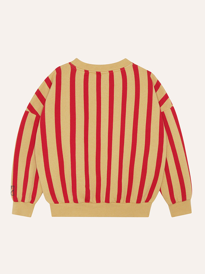 The “Red Stripes Sweatshirt” from The Campamento gives a touch of color to your winter wardrobe. Made in a soft and warm cotton fleece quality it brings comfort and coolness for any ocassion. Long sleeves and oversized fit. Rounded neck in rib quality for more comfort. Fleece 100% cotton. Made in Portugal.