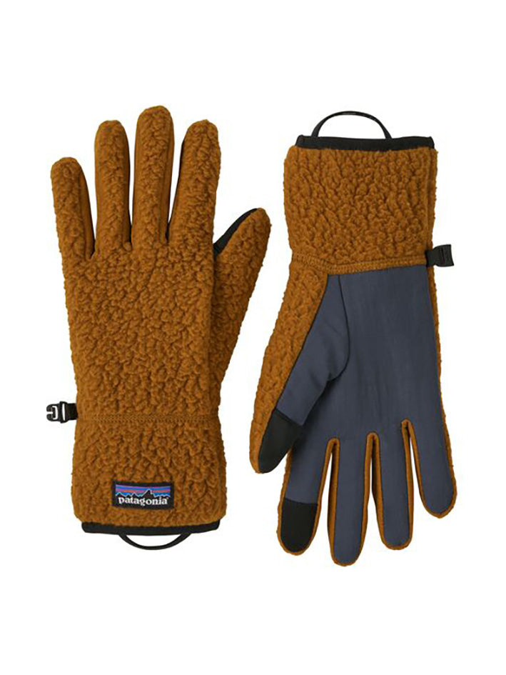 Warm, comfortable Patagonia Retro Pile Gloves in Shelter Brown made from 100% recycled polyester with 100% recycled nylon palm overlays.