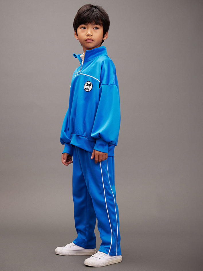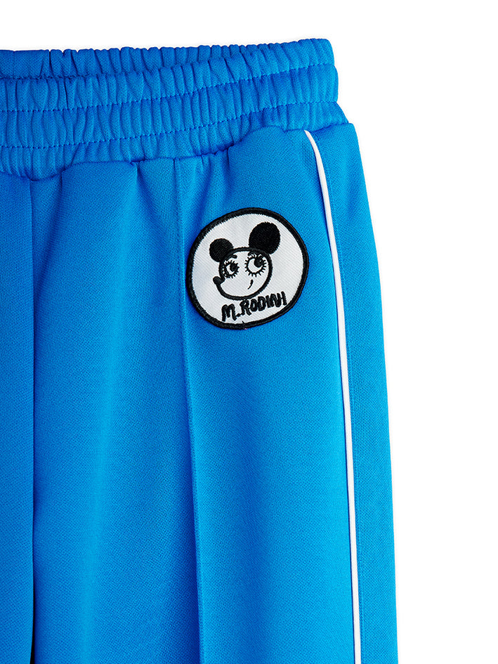 Mini Rodini only uses certified high quality recycled polyester made from post consumer plastics such as PET bottles and other plastic waste. Track Pants in Blue made from 100 % Recycled poyster. Designed with press pleats and a Ritzratz Patch for extra style! Features • Pockets • Pipeline along the legs • Press pleats Material • 100% Recycled polyester