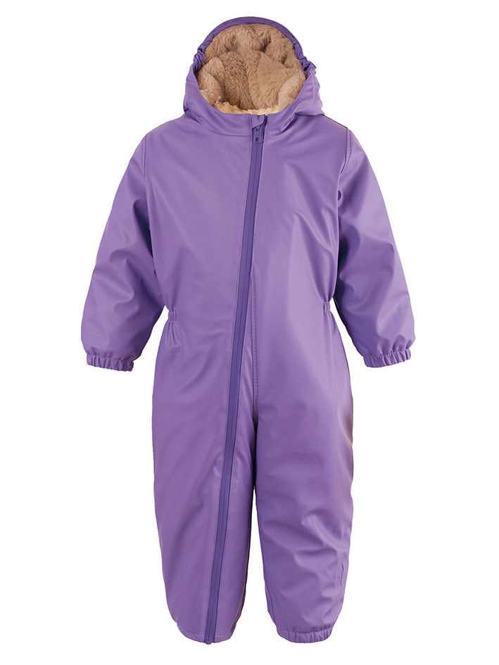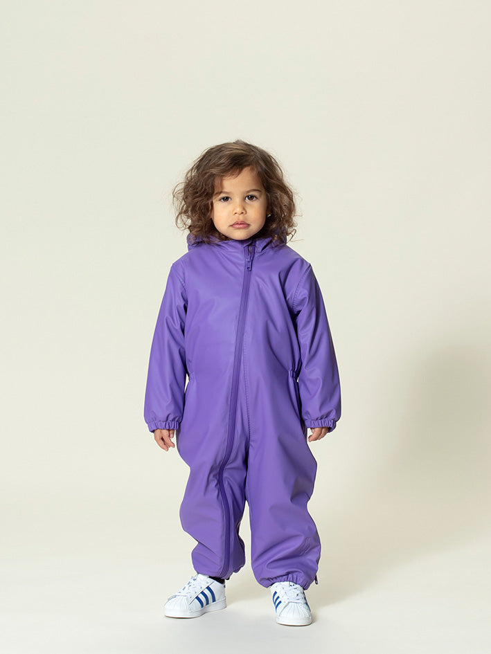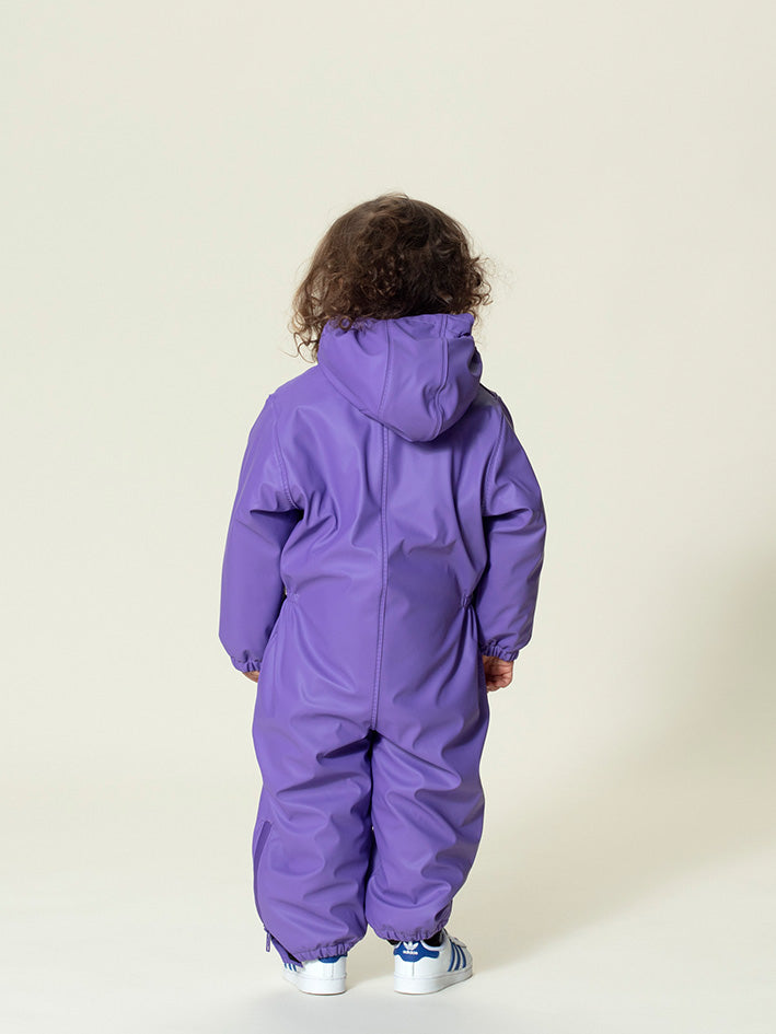 This waterproof Roger Rabbit Coverall in Passion Purple by Gosoaky is a must-have in any children’s wardrobe. The body and hood are lined with soft faux fur and the slight padding keeps your small one comfortable and warm. The 5000mm column pressure waterproof coating and signature sealed seams ensure that your child will truly stay dry in moderate to heavy rainfall. 5000mm column pressure Sealed seams Micro PU Soft faux fur lining Elasticated hood Easy to put on/take off Horizontal waterproof front zipper Waterproof side zippers at ankles so shoes can stay on Elasticated foot band Bionic finish® Eco; water repellent component based on a fluorine free recipe All our garments are BPA + AZO free and certified with all child safety regulations No animals are used for these products