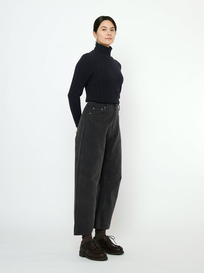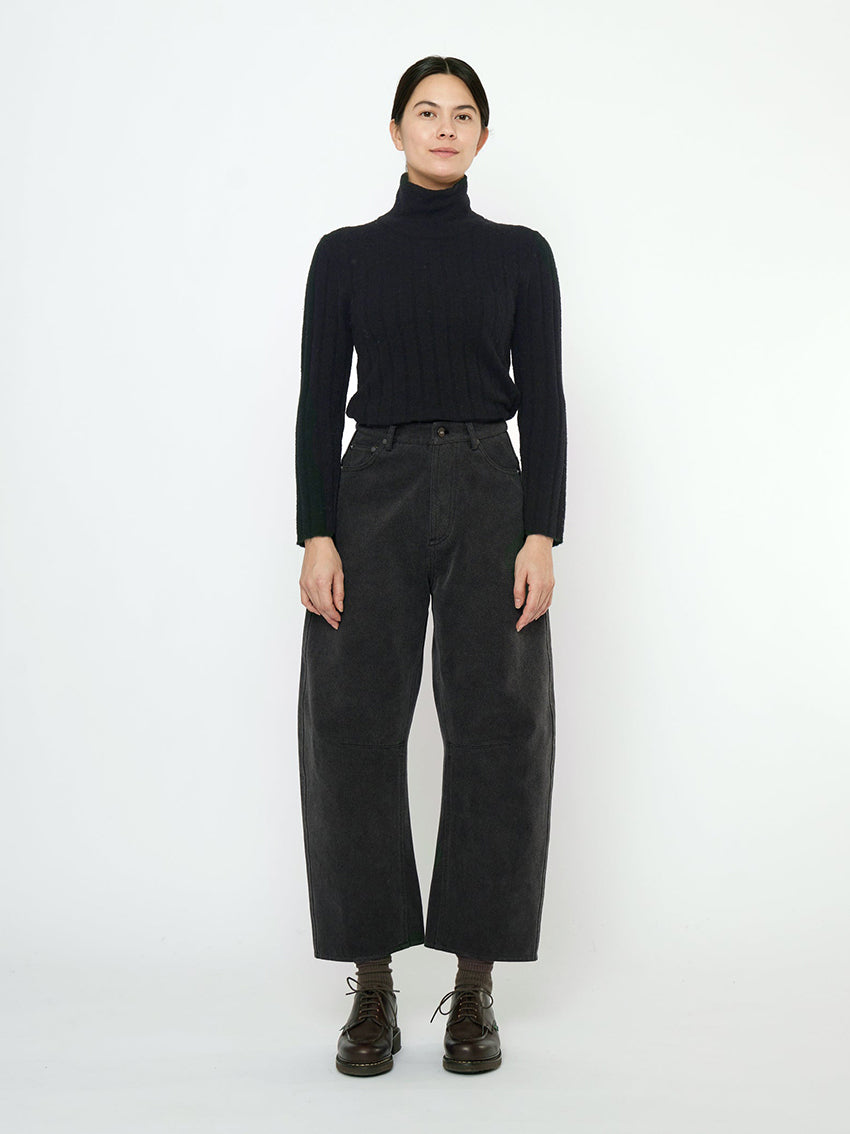 A sophisticated, lightweight ribbed top featuring a classic roll-neck collar.