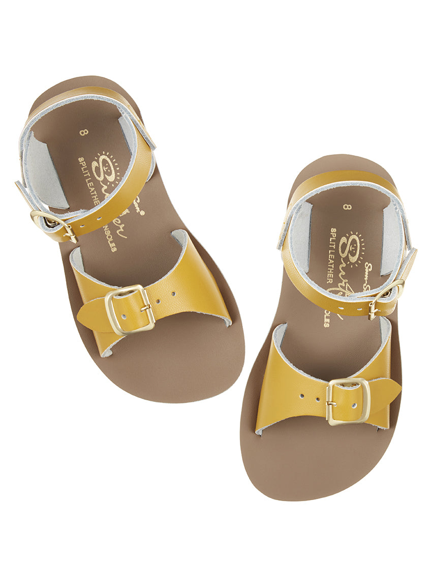 The sandals can be worn in water and handwashed with a gentle detergent.