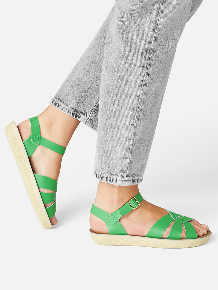 Sun-San Swimmer Sandals Kelly Green for Teens features the inter-woven design of the Original Salt Water Sandal coupled with the most comfortable urethane sole, creating a stylish sandal that can be worn from day to night.