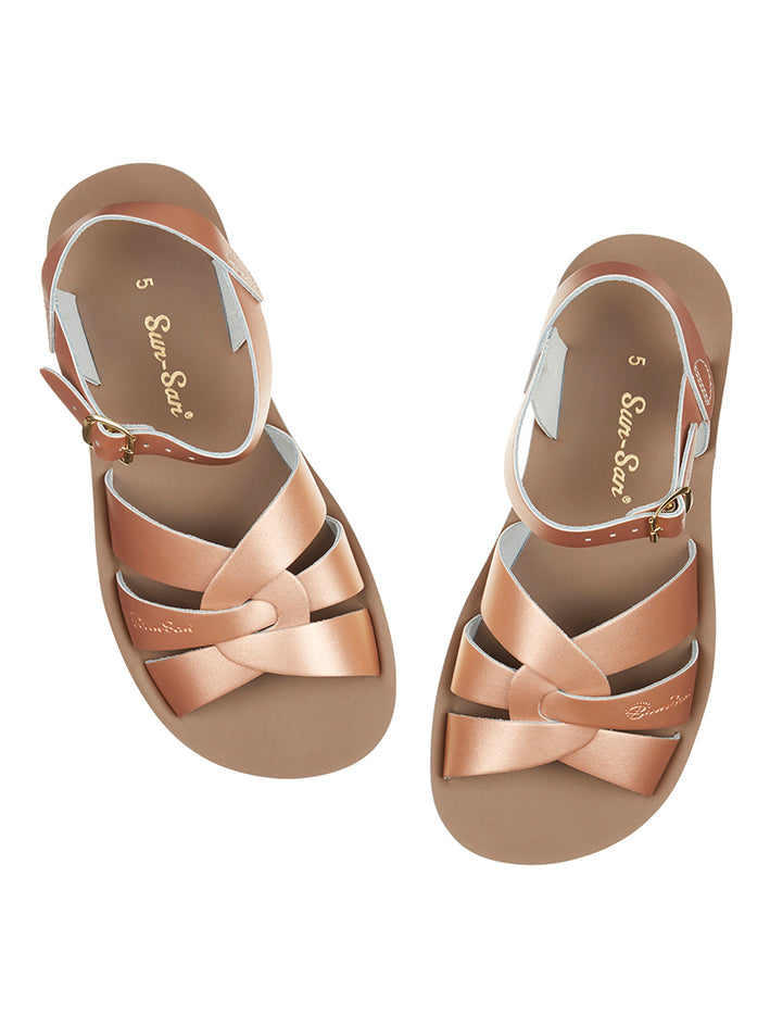 Sun-San Swimmer Sandals Rose Gold for Teens features the inter-woven design of the Original Salt Water Sandal coupled with the most comfortable urethane sole, creating a stylish sandal that can be worn from day to night.