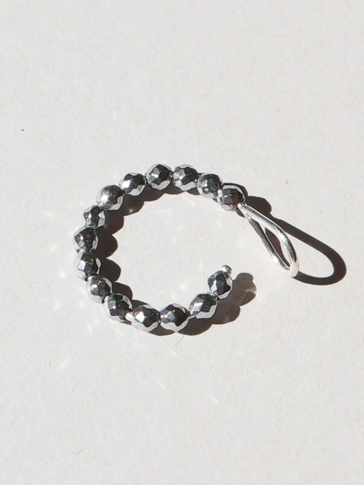A small sparkling earcuff out of hematin.