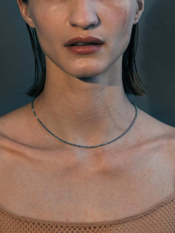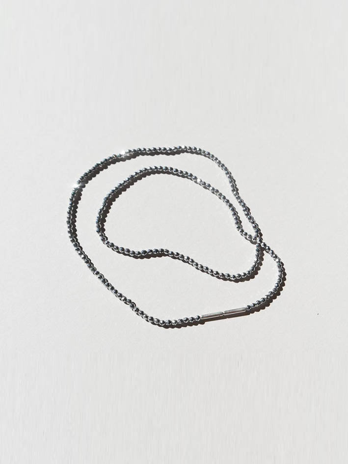 A delicate short necklace in sparkling hematin with a sterling silver clasp.