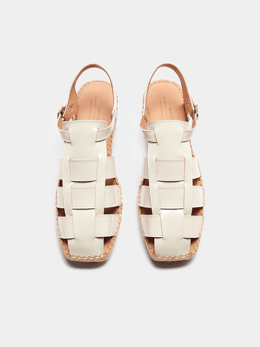 The Naguisa Sativa is a cage-style espadrille with a closed toe.