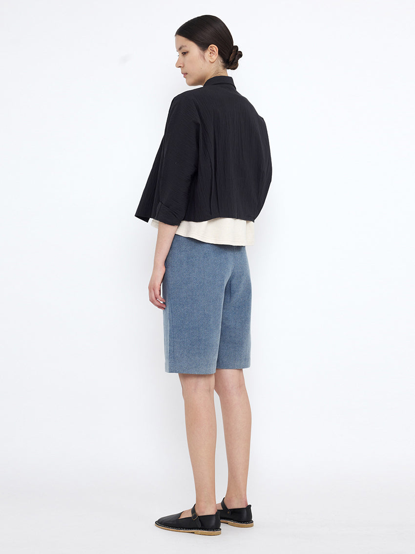 Signature 3/4 Cropped Shirt Jacket Textured Black