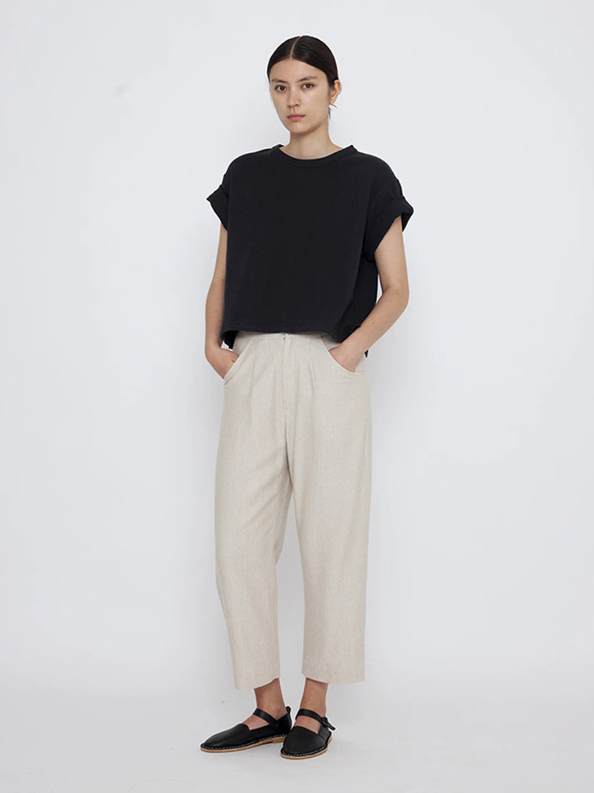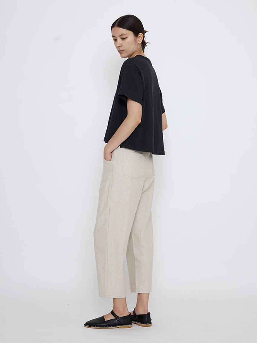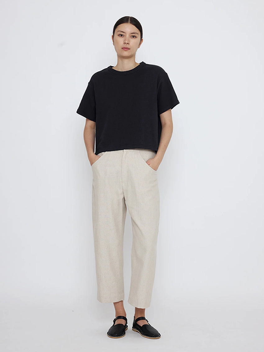 A boxy fit crewneck t-shirt for everyday wear. Cut with a cropped length for easy pairing with high waisted bottoms.