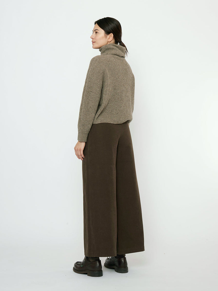 Flattering high-rise with a side-zipper and single button closure for a clean, minimalistic look at the hips.