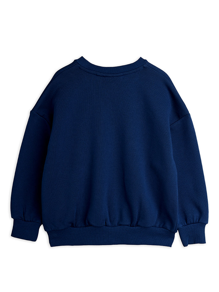 Mini Rodini Skeleton Sweatshirt Blue with a large skeleton print made from 100 % GOTS-certified organic cotton.