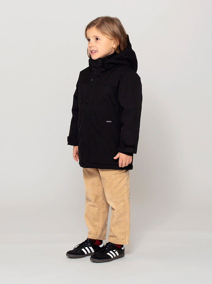 This Gosoaky Sleeping Pigeon Jacket in Black is far from boring! The 4 pockets allow a lot of storage space for all the precious things you might find on an adventure and the hood can be detached if necessary.