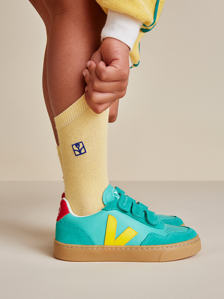 Color pops for the little ones as VEJA collaborates with the campamento. Introducing the V-90 Freshmint/Sunshine Small, just for kids.