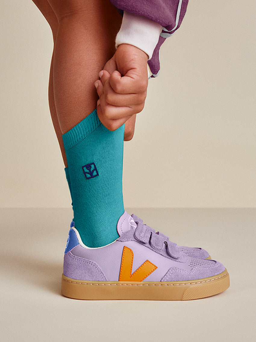 Color pops for the little ones as VEJA collaborates with the campamento. Introducing the V-90 Orchid/Faubourg Small, just for kids.