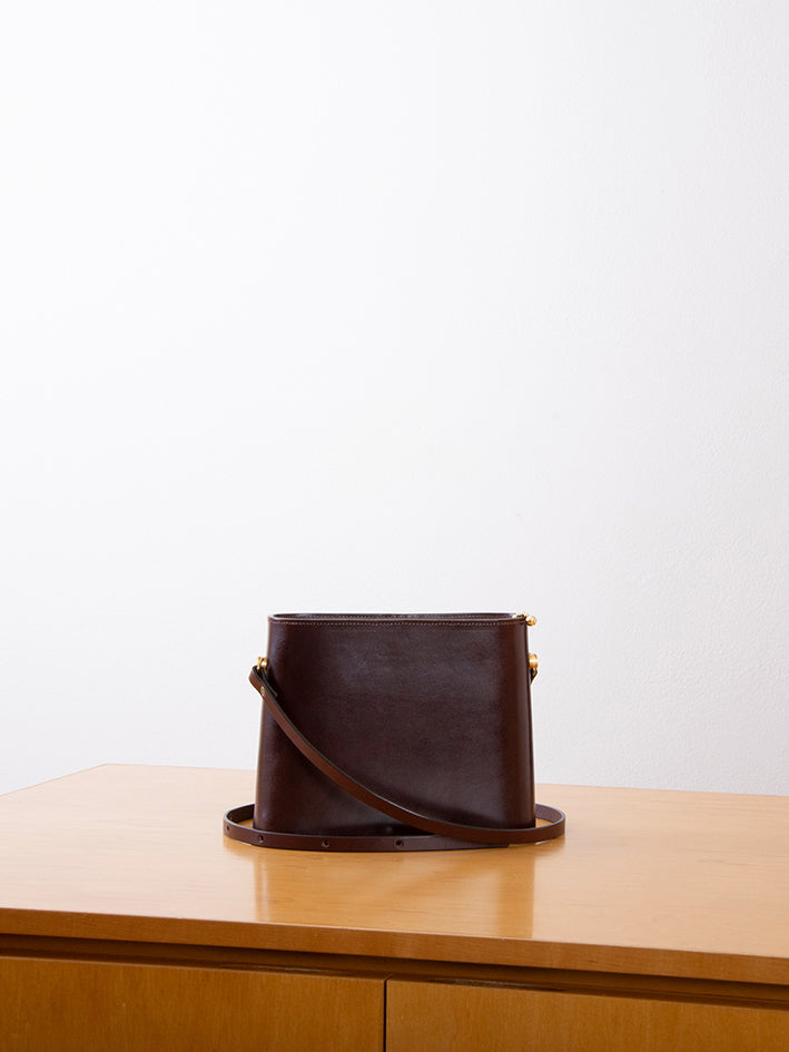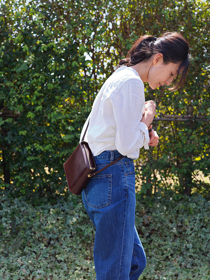 Southern Field Industries Shoulder Bag in Chocholate is made of Japanese vegetable tanned cow leather with EXCELLA® zipper.