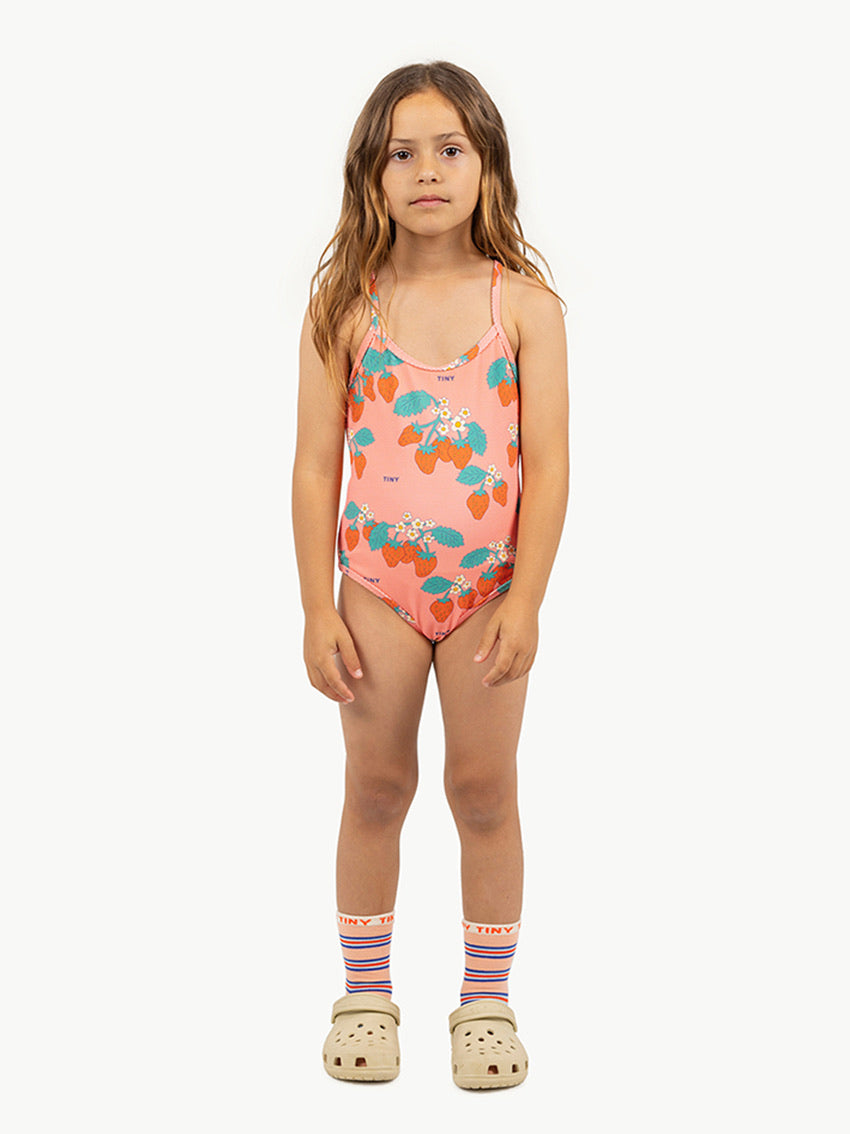 Turning strawberries into a statement! The Strawberries Swimsuit in Dark Pink by Tinycottons is a perfect option for a day by the water. It comes in a one-piece design with straps. Its strawberry print and vibrant colors will be an icon in your summer wardrobe. Carefully designed in Barcelona, crafted in China in BSCI certified factories, following responsible and sustainable practices every step of the way. Composition: Exterior: 94% polyamide, 6% elastane Lining: 90% polyamide, 10% elastane