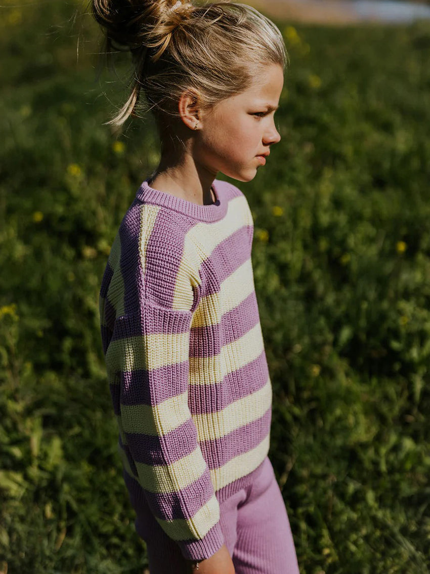 Designed with a regular fit and wide horizontal stripes, this sweater delivers a relaxed yet refined look that’s easy to style and made to last. Versatile and comfortable, it’s perfect for everyday adventures, school days, or quiet slow moments at home.