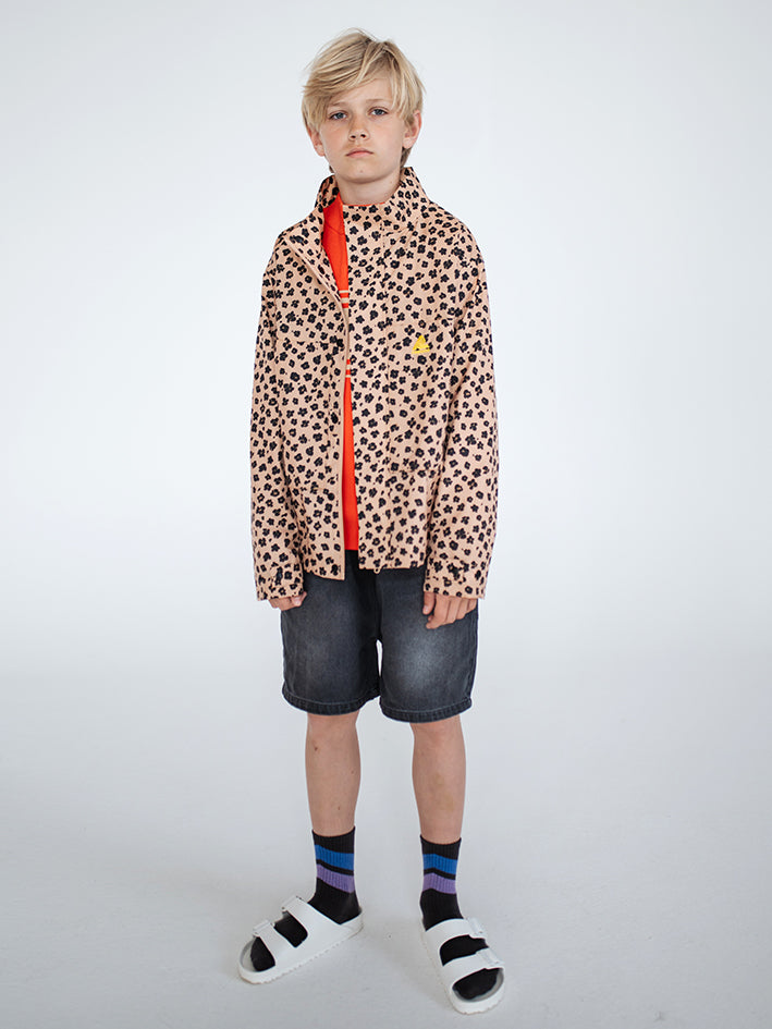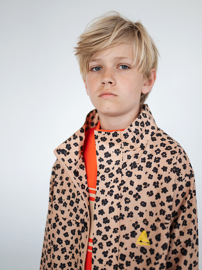 Crafted from 100% recycled lightweight polyester, the Summer Jacket in Leopard Flower from Repose AMS is water- and windproof and breathable, making it perfect for unpredictable weather.