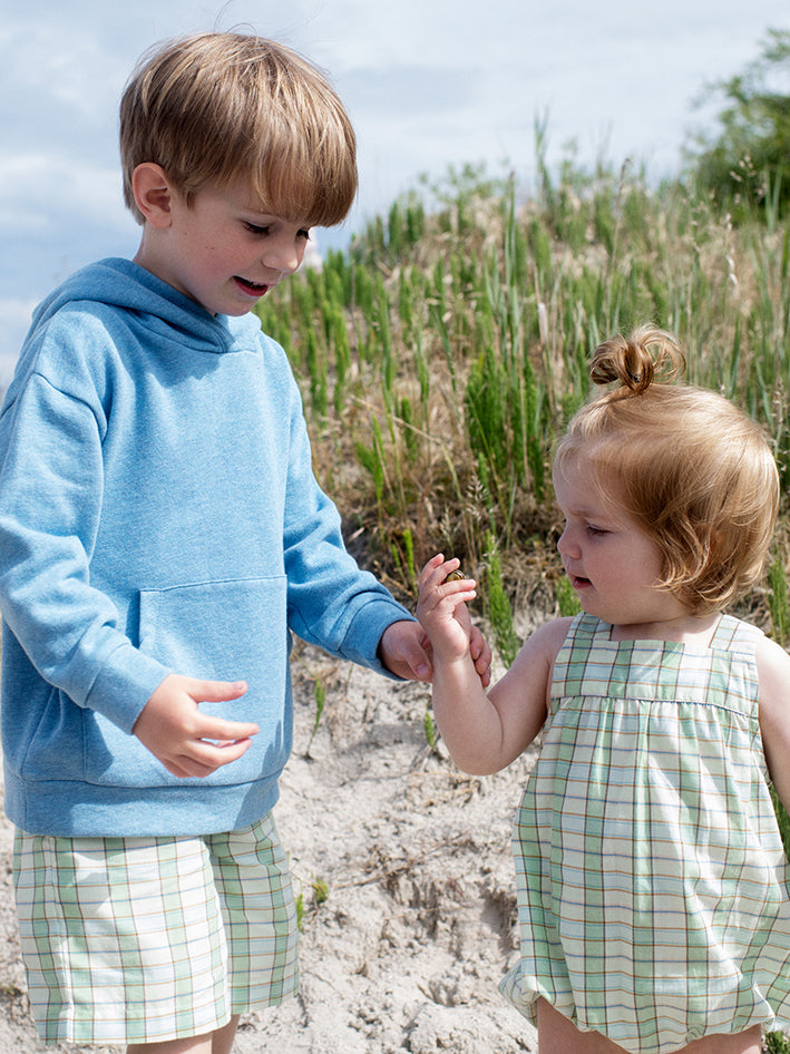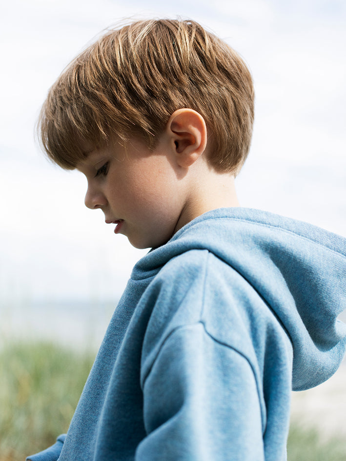 Organic cotton Sweat Hoodie by Serendipity in the strong Azur Blue. Style with large monopocket in front, large hood and folded sweat on trims. 100% organic cotton and GOTS certification.
