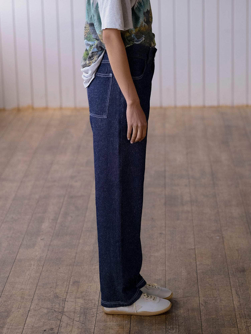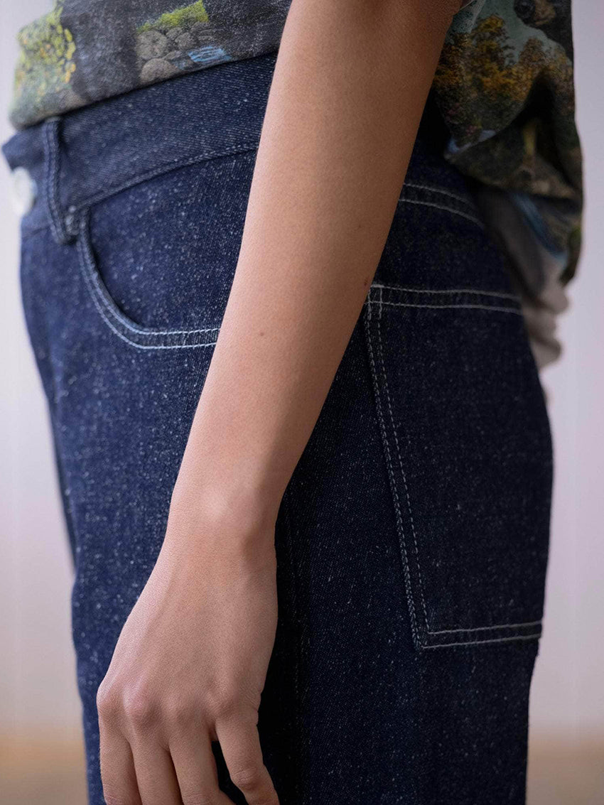 Tajo Silk Cotton Denim Pants Indigo Blue Wash