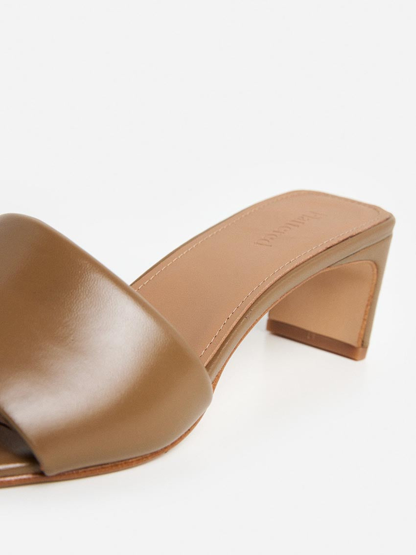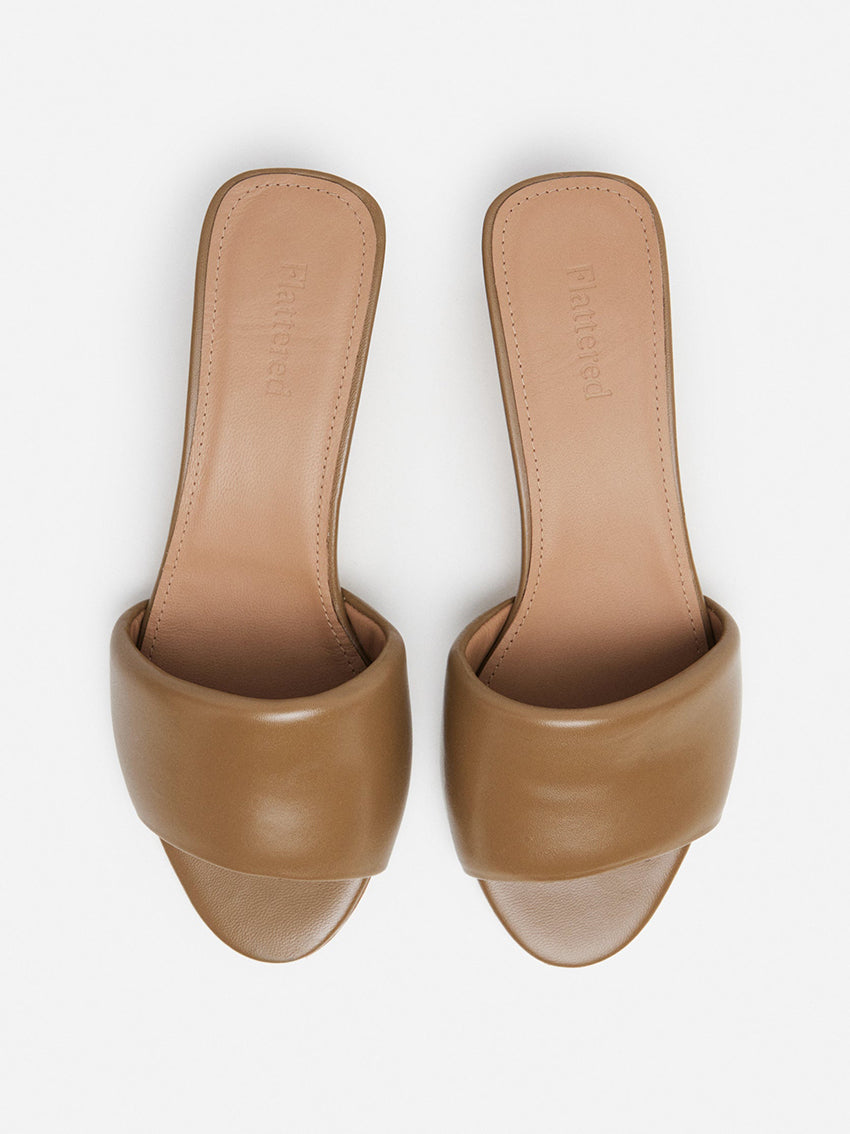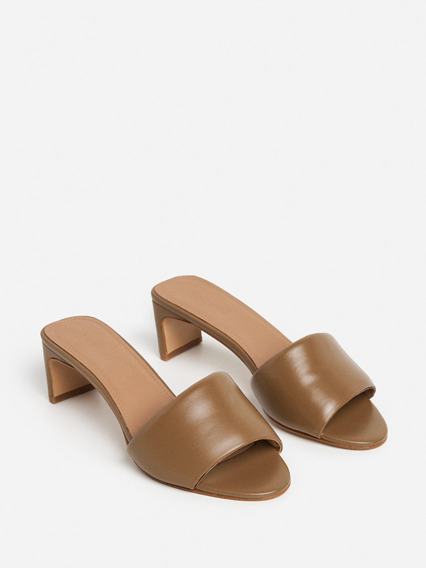 The Tallulah Leather Mules in Olive by Flattered is crafted in: Elda, Spain