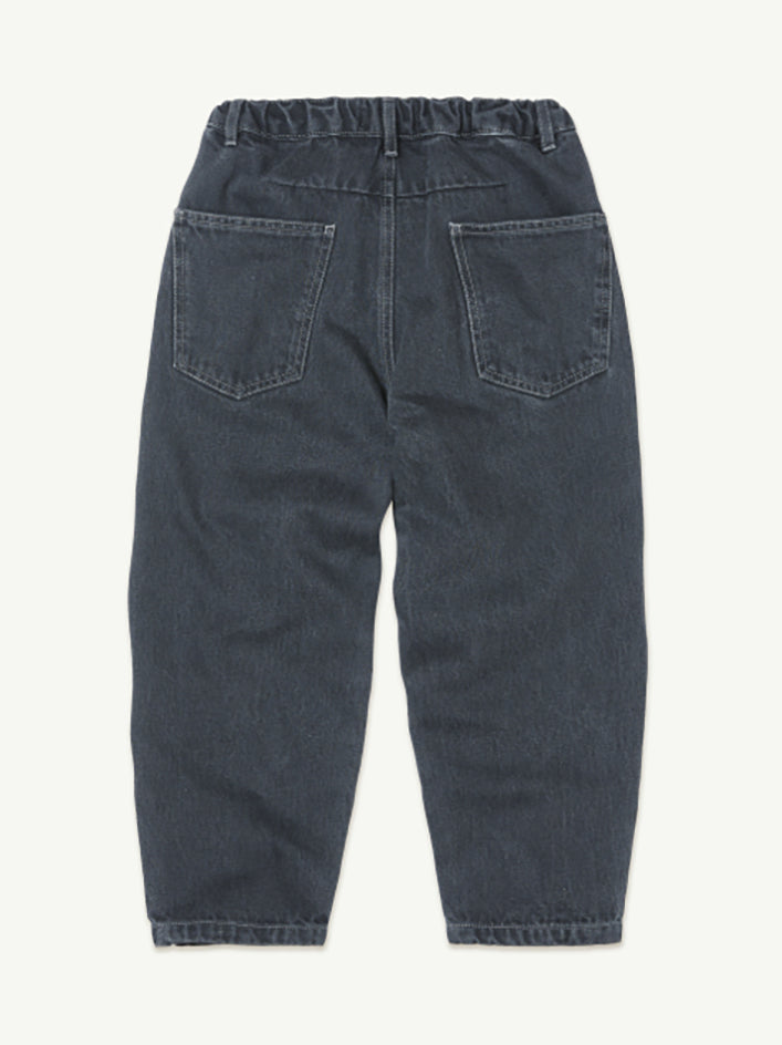 Main Story's Faded Black Tapered Jeans effortlessly combine a vintage fit with a modern vibe. Crafted from organic-cotton denim in a blue, showcasing a relaxed silhouette with tapered legs and sit comfortably low on the waist. Zip fly, button closure; internal elasticated adjuster for a comfortable fit as they grow. Two deep front pockets Two back patch pockets 100% Organic Cotton Denim Crafted with care in Portugal